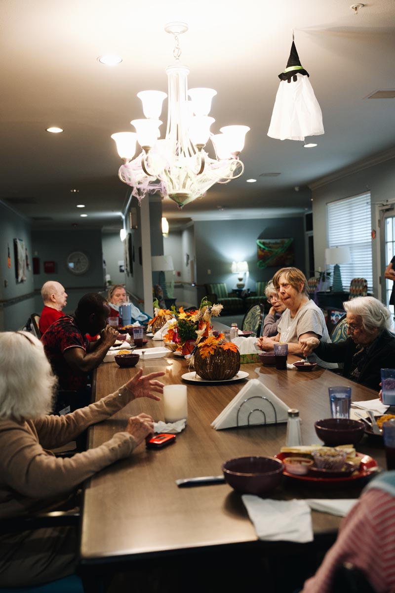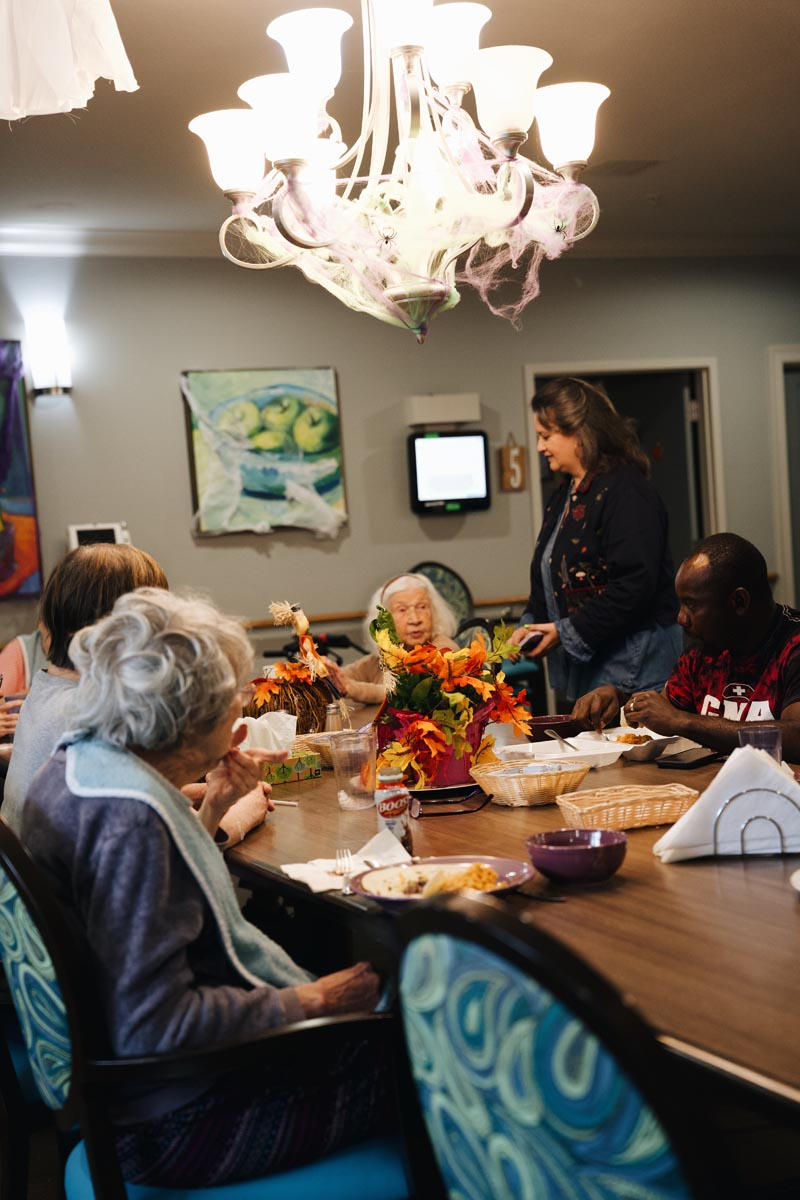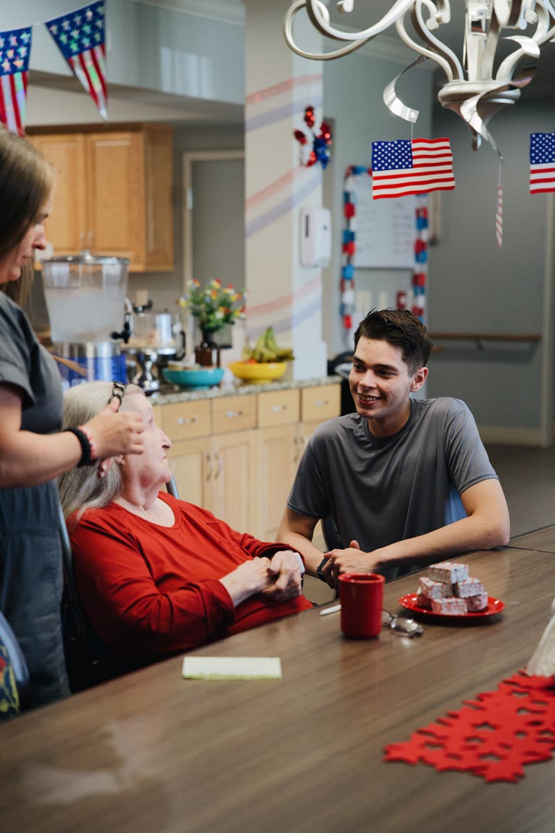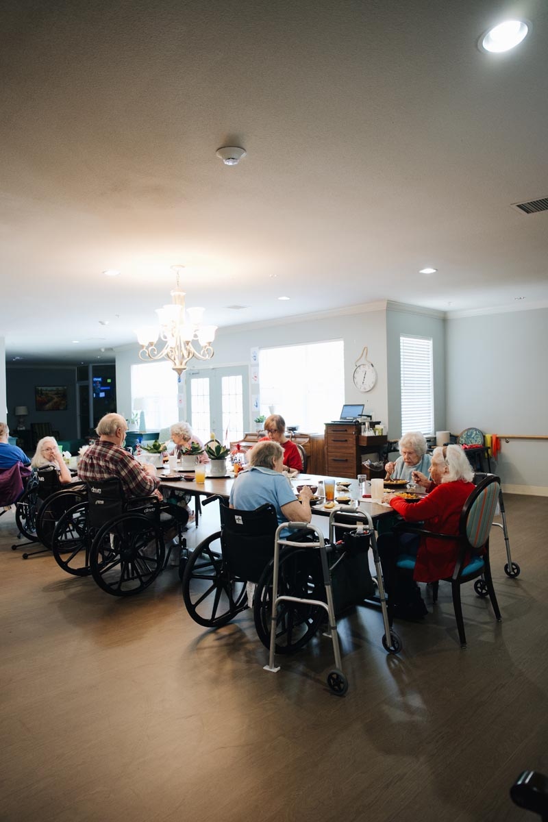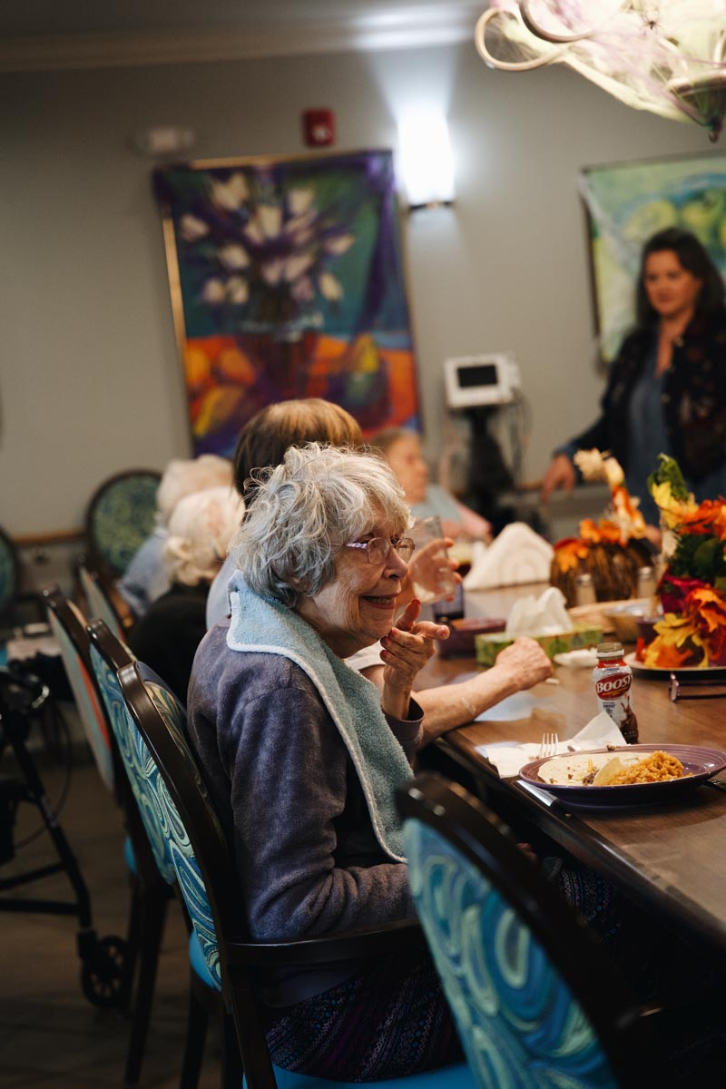 When you take away forced fun and artificial activity schedules, elders can enjoy a rhythmic, comfortable, natural flow of daily life, where they get to choose the activities they’re attracted to. Sometimes those activities look like cherished catch-up time with visiting family, friends, and even pets. Other times, it may look like a day at the spa or hair salon, conveniently located inside each cottage.